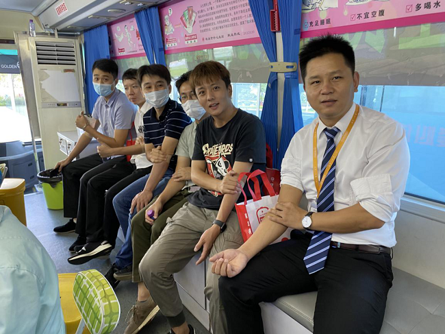 在金灣區(qū)市民服務(wù)中心A2棟一樓大廳,大家在工作人員的指引下,依次進(jìn)行登記填表、測(cè)量血壓、抽血化驗(yàn)等,整個(gè)流程有條不紊。 順利通過(guò)檢查的同志們?cè)谑醒镜墨I(xiàn)血車上自豪地卷起袖子,奉獻(xiàn)出自己的一份愛(ài)心。