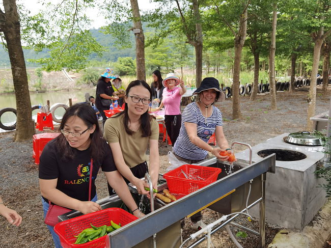 活動結(jié)束后,大家來到燒烤、野餐場地,有的生火、有的配調(diào)料,洗菜、炒菜、燒烤,忙得不亦樂乎。沒過多久,一道道香噴噴的美食就擺在了眾人面前,整個野炊燒烤現(xiàn)場洋溢著歡聲笑語,其樂融融,大家庭的氛圍濃重、愜意。