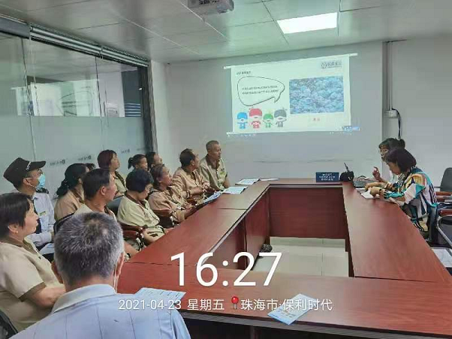 4月23日、24日下午聯港公司垃圾分類項目宣講員到保利時代、中海左岸嵐庭小區(qū)開展垃圾分類專題培訓,保利時代、中海左岸嵐庭物業(yè)管理層和保潔隊伍等共計50人,分成兩批參訓。聯港公司垃圾分類項目宣講員受邀前往現場作《垃圾分一分金灣美十分》主題培訓。
