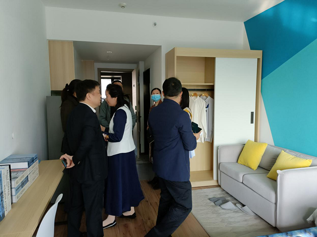 考察組一行首先來到港灣1號(hào)公館,參觀了該公司運(yùn)營(yíng)管理的保障性住房樣板房,詳細(xì)了解配置標(biāo)準(zhǔn)、租賃情況以及租金標(biāo)準(zhǔn)等情況,并參觀了解公寓的智能化管理、物業(yè)服務(wù)思路和現(xiàn)狀。