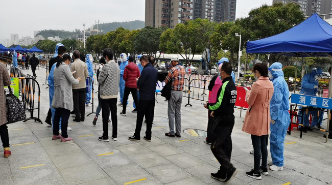 安全高效,有條不紊?,F(xiàn)場工作中,防疫抗疫宣傳、維護(hù)秩序、信息采集,及時提醒群眾保持一米安全距離,全程佩戴口罩,主動掃碼測溫,嚴(yán)格規(guī)范檢測流程,每一樣都是有條不紊地推進(jìn),連日的奮戰(zhàn),從醫(yī)務(wù)工作者、社區(qū)工作者、志愿者到群眾,都增添了更多的淡定、從容。