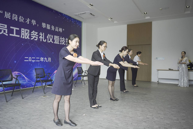 客服技能展示以賓客引導(dǎo)、員工坐姿、站姿、倒水等內(nèi)容展開角逐,展現(xiàn)出了服務(wù)優(yōu)秀的客服應(yīng)有的才能。