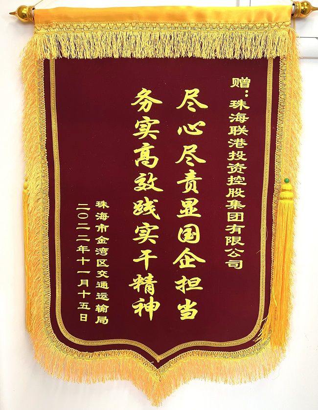 2022年11月15日上午,珠海市金灣區(qū)交通運(yùn)輸局局長(zhǎng)章芳一行領(lǐng)導(dǎo)專(zhuān)程將一面寫(xiě)著“盡心盡責(zé)顯國(guó)企擔(dān)當(dāng),務(wù)實(shí)高效踐實(shí)干精神”的錦旗送到聯(lián)港集團(tuán),衷心感謝聯(lián)港集團(tuán)在航展期間停車(chē)場(chǎng)保障工作中“不講條件、不講困難、不辭勞苦”,勇于擔(dān)當(dāng)、晝夜奮戰(zhàn),緊急處置P6、P8停車(chē)場(chǎng)各種應(yīng)急情況,積極引導(dǎo)市民有序入場(chǎng)、熱情地為市民們解答觀(guān)展政策,提供航展信息咨詢(xún)服務(wù),為市民提供了優(yōu)質(zhì)的觀(guān)展體驗(yàn),用責(zé)任、熱情、耐心守護(hù)“藍(lán)天盛會(huì)”,為航展增添了一抹亮麗的風(fēng)景。